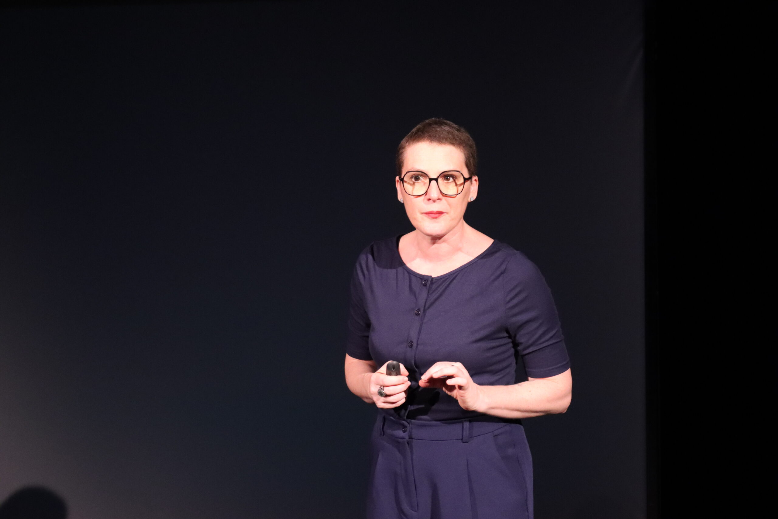 Coraline Cauchi poursuit son exploration féministe en s’emparant de ce texte éminemment politique et éducatif. Dans un dispositif proche de la conférence, elle s’amuse à se regarder elle-même, à endosser le rôle de la chercheuse / journaliste, mais aussi bien sûr celui de Gwendoline.